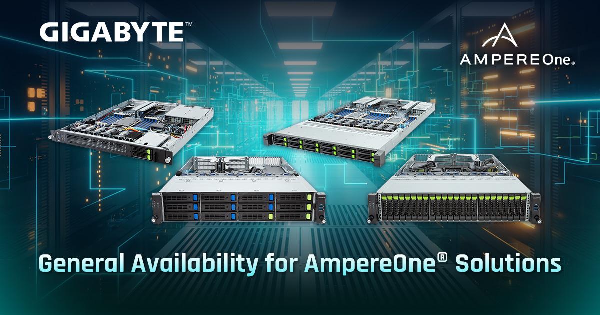 GIGABYTE Announces General Availability for Its New Servers Using AmpereOne® Family of Processors for Cloud Native Workloads - and Joins Yotta 2024